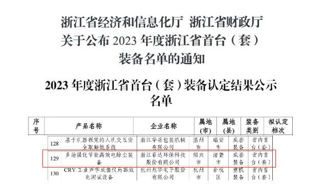 喜報!菲達環保研發的“多場強化節能高效電除塵裝備”獲評浙江省首臺(套)